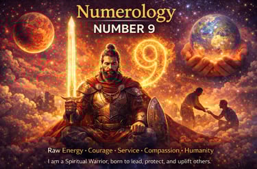 Numerology Number 9 is the number of power, courage, completion, sacrifice, and universal love. It represents the final stage of wisdom, where personal ambition transforms into service for humanity. Number 9 people are born leaders, fighters, and protectors with a deep emotional core.